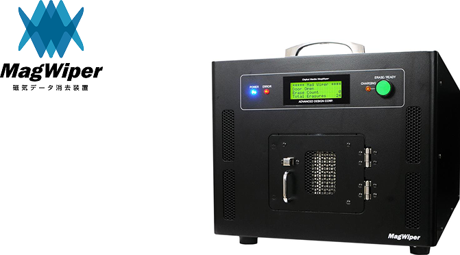 ハードディスク(HDD)等の磁気記録メディアに対して、外部より強い磁界を照射することでデータを消去します。消去後のメディアの再利用はできません。