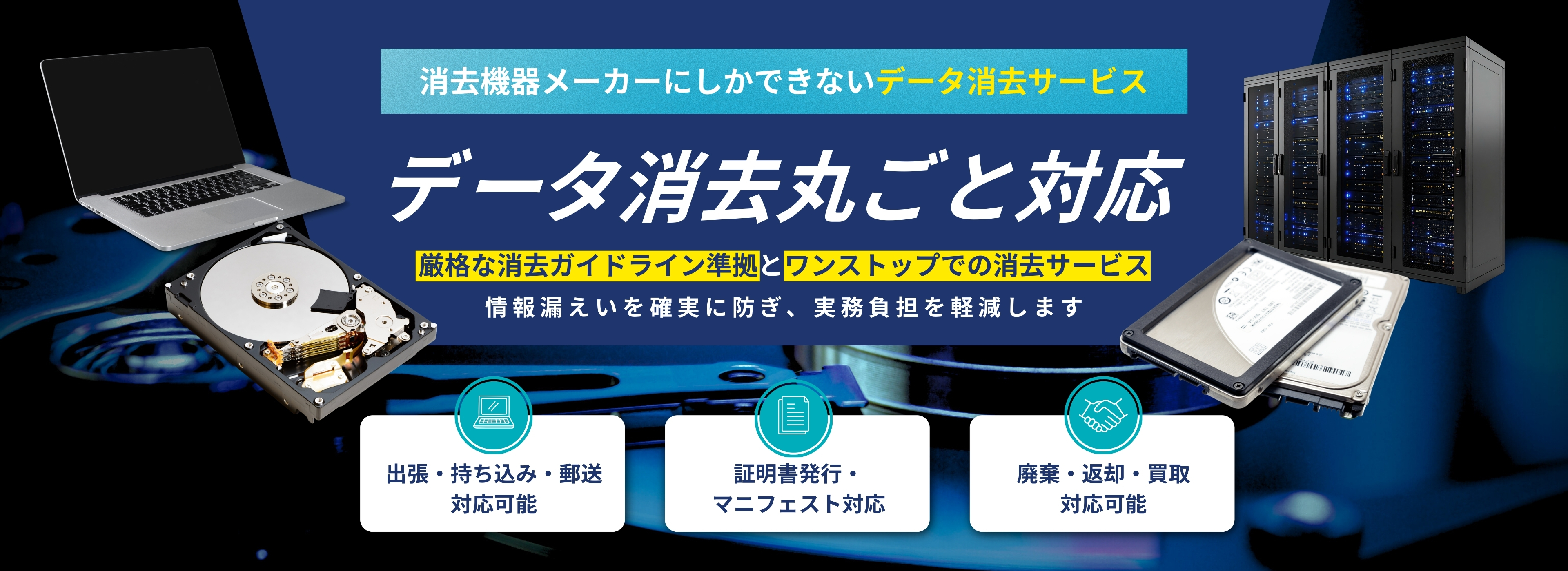 など目的や状況によって最適なデータ消去方法をご提案します。